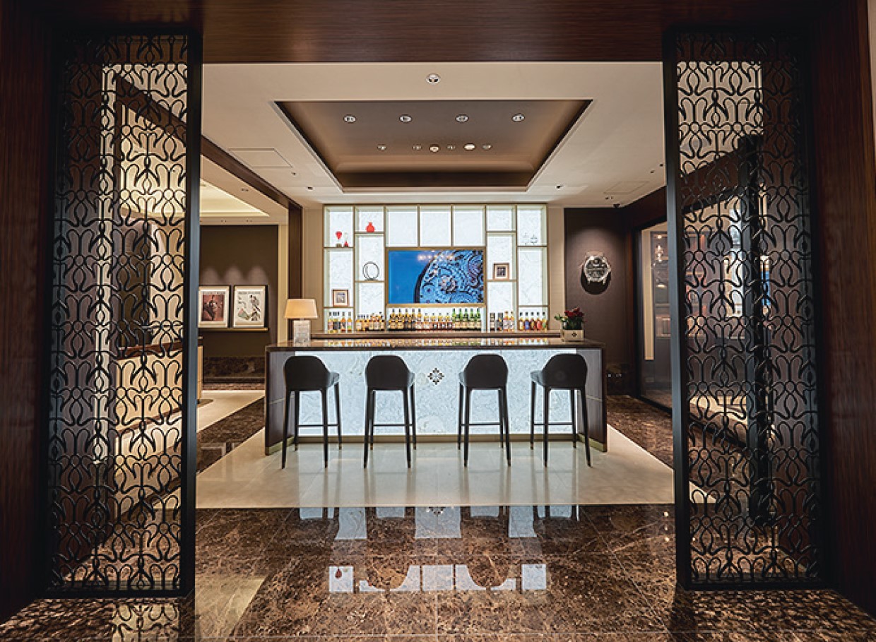 「ここまで本格的なゆったりとしたバーカウンターをしつらえているブティックは、世界でもあまり例がない。ここにはメイドインジャパンにこだわって酒類をそろえています。それから奥のミーティングルームは、ダイニングとしても使えることを意識した造りで、ケータリングで食事も楽しんでいただけます。我々のお客様は皆さん仲がよく、さらに交流を深められる場をここで提供できます。利害関係もしがらみもなく、高級時計を心底愛する皆さん同士が楽しんでもらう中で、パテック フィリップ ワールドを見て感じていただいています」