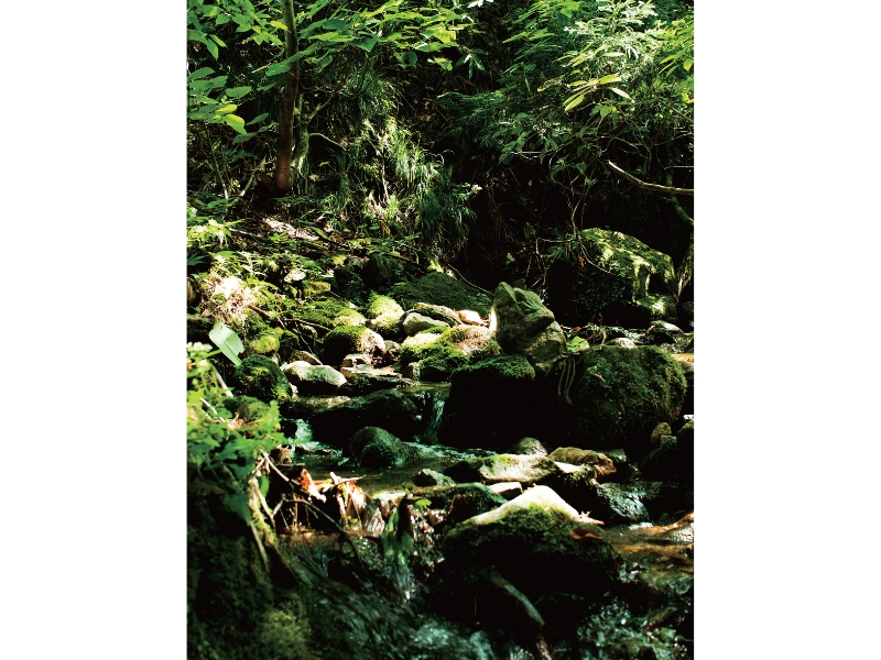 さらに沢沿いの道を進むと、白糸の滝に着く。周辺には女神霊泉、降る滝、姥滝、爺滝など7つの滝がある。これらはブナの森の蓄える水の恵み。冷たい清流は尽きることがない。急な山道に喘ぎ、石伝いに渡る川に足がすくみ、緊張しっ放しだったが、水を見ると気持ちが洗われるよう。“水休み”が心地いい。