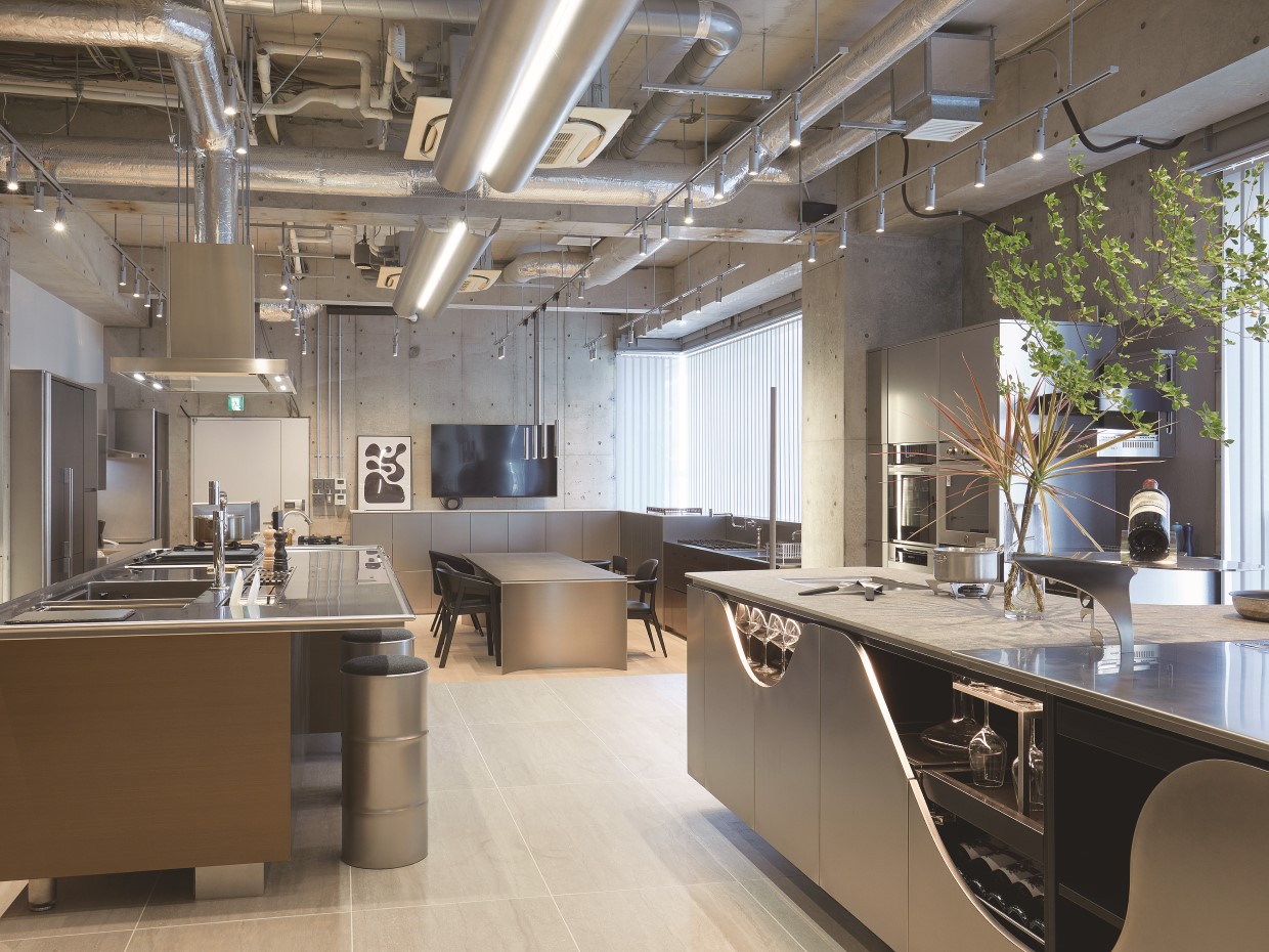 ただし、これはあくまでオーダーの一例だ。マイスデルのフルオーダーキッチンは、名前の通り“本当のフルオーダー”だ。“規格品”という概念はない。家庭用、業務用を問わず、どんな空間に設置され、誰がどのように使うのか─ライフスタイルや好みによって、天板の高さや幅、シンクのサイズ、棚の開き方までゼロから設計していく。館内には、先述のコンセプトモデル以外にもさまざまなキッチンが展示されており、中には実際に調理体験ができるモデルも。自分の手で使ってみることで使用感を確かめ、オーダーの新しいインスピレーションを得る。ノウハウ豊富なスタッフが丁寧にヒアリングし、理想を形にしてくれるのだ。